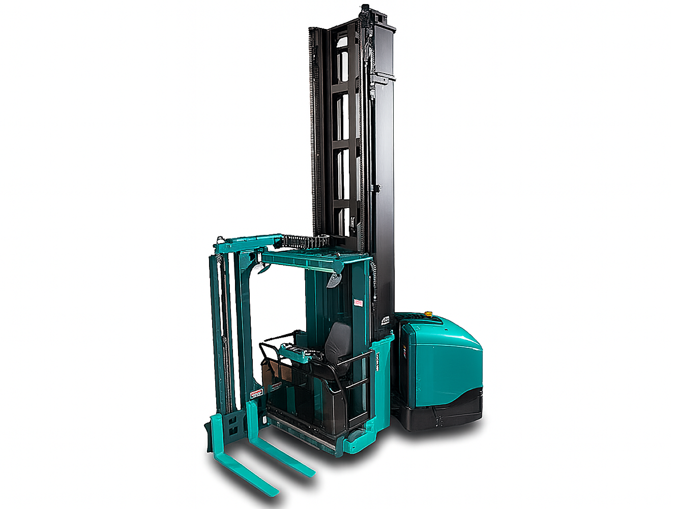 オペレーターがフォークと一緒に上昇し、高い棚から直接荷物(商品)をピッキングできるフォークリフトです。